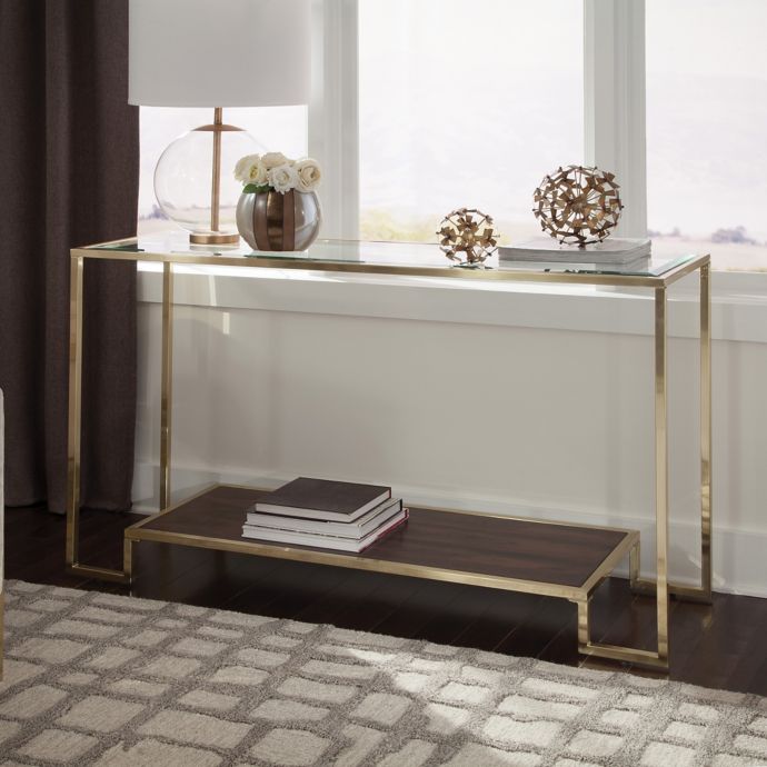 Located in west palm beach, fl. Ava lucite console table with glass top. Vintage coffee table brass smoked glass long console table. Acrylic and glass console brings sophistication and excitement to a transitional environment. Transform your living space or hallway with this console table. Chrome framed console table with brass banding and a black glass top. Rare vintage john widdicomb for mastercraft brass console table with beveled glass insert. Crosley furniture aimee console table, gold and glass. 55 w meghan console table etched brass base shelf tempered glass iron frame. Wood, bone, resin and mdf 41 x 17.7 x 29.5 inches. Thick beveled glass top (can be exchange italian modern console table in chrome, brass, and marble. Shop console tables and other modern, antique and vintage tables from the world's best furniture dealers. Vintage console tables are often half moon shaped to make the best use of space.