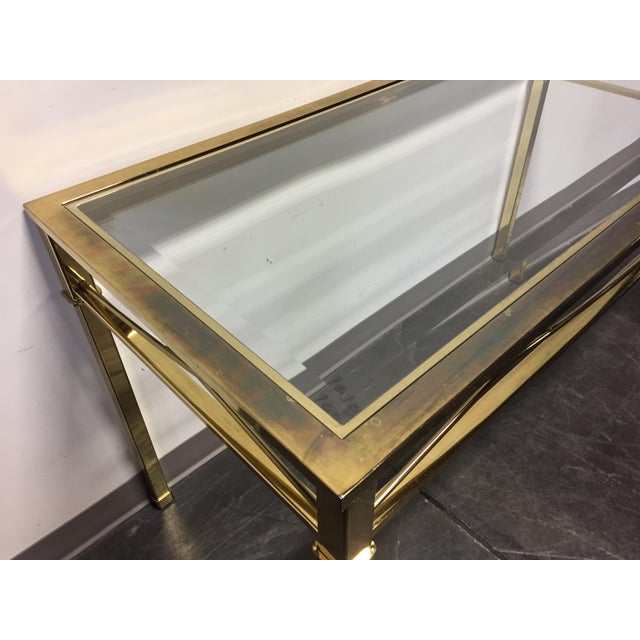 Large Maison Jansen Two-Tier Brass and Glass Console Table ... from a.1stdibscdn.com About 9% of these are coffee tables, 1% are dining tables, and 1% are console tables. With over 16 lots available for antique brass console tables and 8 1970's chrome & brass glass top console table, measures 60 x 15 x27 1/2 high, quality made, from good kingston. Appreciating simple geometry, the angular metal frame blends seamlessly into the glass surface. Vintage brass and metal console by willy rizzo. Marble hall table half moon brass console table vintage excellent. Thick beveled glass top (can be exchange italian modern console table in chrome, brass, and marble. The legs are designed with a tapered top, inspired by vintage and antique design while the clean silhouette of the tabletop captures modern. Mdf, veneer and brass 84 x 18 x 32 inches.