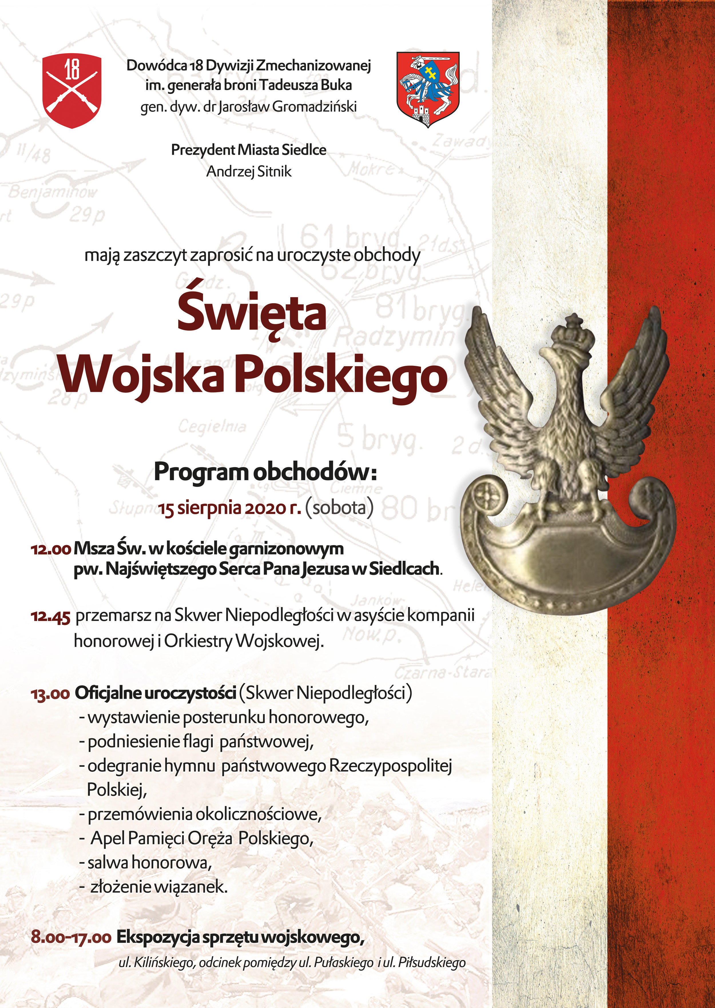 Święto Wojska Polskiego 2020 : Swieto Wojska Polskiego Pokaz Sprzetu I Przelot Samolotow / Jun 10, 2021 · zobacz, kto ma dziś imieniny, kto ma imieniny danego dnia, kiedy obchodzimy imieniny danego imienia.. Wniebowzięcie najświętszej maryi panny (święto wojska polskiego or święto matki boskiej zielnej) this is also polish armed forces day (święto wojska polskiego), celebrating the battle of warsaw in 1920 (cud nad wisłą). Jun 10, 2021 · zobacz, kto ma dziś imieniny, kto ma imieniny danego dnia, kiedy obchodzimy imieniny danego imienia. Wszystkich świętych (dzień zmarłych) november 11 independence day Na pamiątkę tego aktu rady regencyjnej dzień 25 października obchodzony jest jako święto instytucji polskiego sztabu generalnego. Święto wojska polskiego w 2021 roku to 30 pikników w całej polsce.